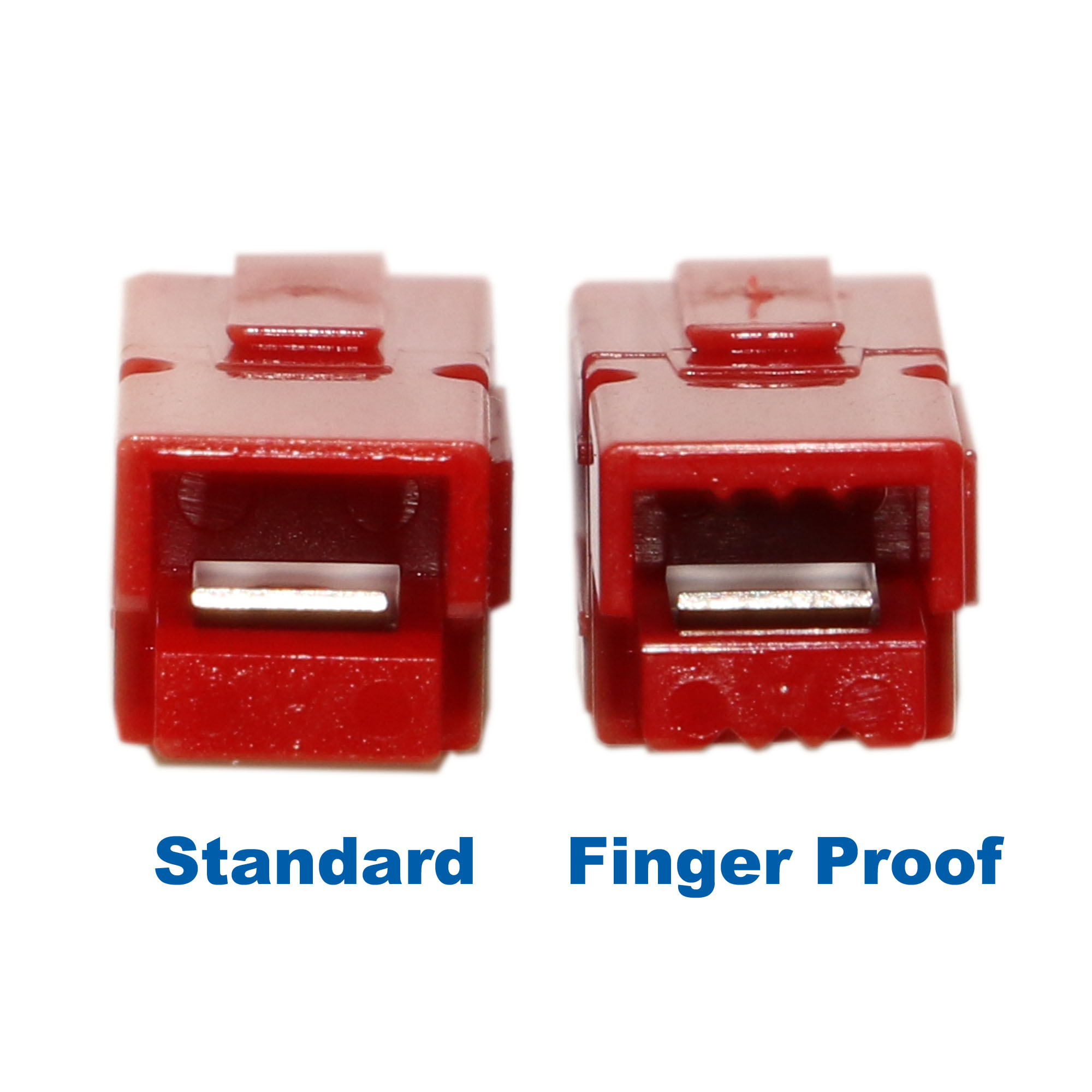 Dies ist die "Finger Proof" Version des PowerPole Gehäuses. Die speziell geriffelte Innenstruktur und die kleinere Öffnung sollen eine versehentliche Berührung der Kontaktflächen in unter Spannung stehenden Schaltungen verhindern. Diese Gehäuse sind mit anderen FP Gehäusen kompatibel, können aber nicht mit Standard-Gehäusen kombiniert werden.
