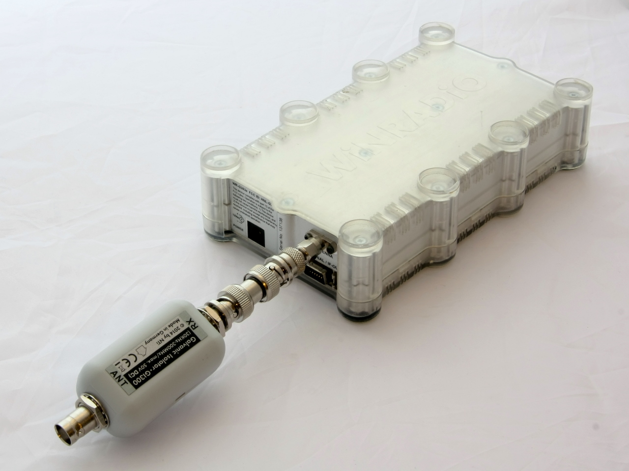 Der galvanische Isolator GI1000 trennt den Gleichstrompfad zwischen dem Koaxaußenleiter bzw. Abschirmung der Antennenzuleitung auf, um Störungen durch Potentialunterschiede zu unterdrücken. Zur Trennung wird ein kleiner Ringkernübertrager verwendet; zusätzlich ist hier bei uns der Koax-Innenleiter nochmals breitbandig über Kondensatoren DC-isoliert, sowie noch ein Grob- & Feinschutz für Überspannungen integriert.