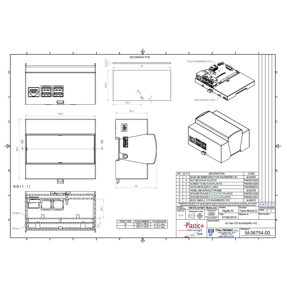 Hutschienengehäuse / DIN Rail KIT 6M XTS für Raspberry Pi 3