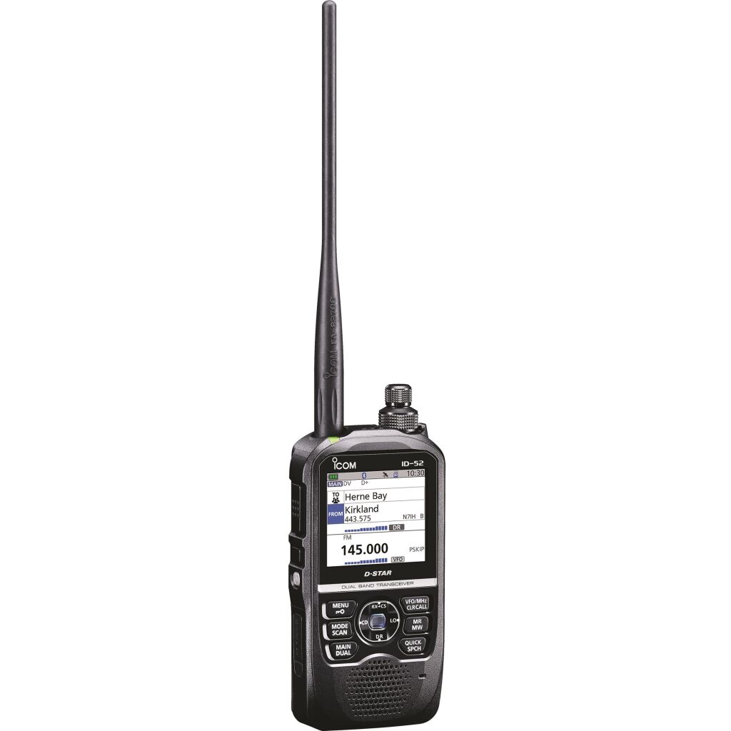 Mit dem ID-52E kann man sich unabhängig von der Distanz der Gegenstation klar in digitaler Sprachqualität verständigen. Darüber hinaus ist es möglich, digitale Sprache mit Daten, Textnachrichten, GPS-Standortinformationen und Bilder zu senden.