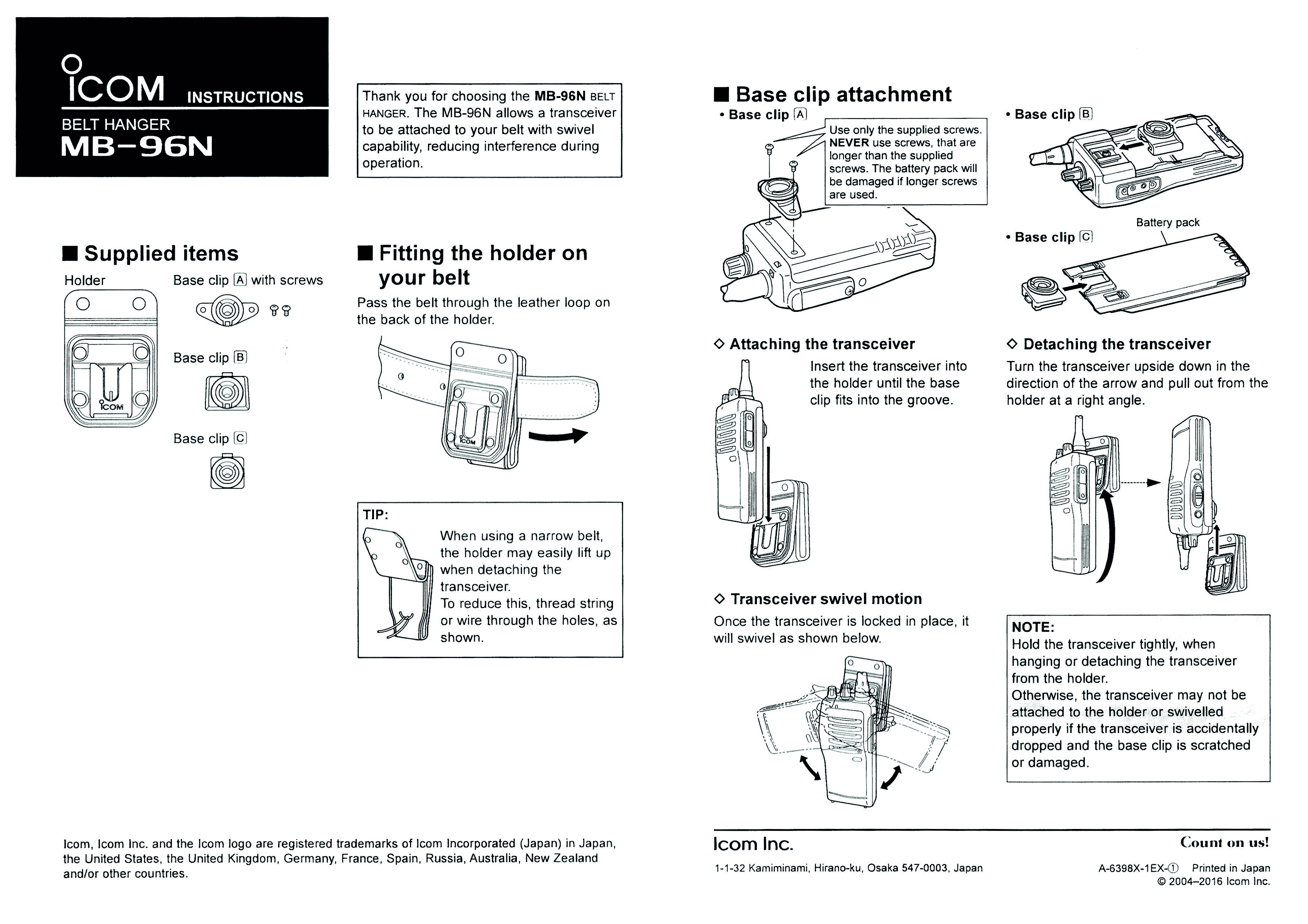 Produktinformationen "Icom MB-96N Lederholster / Gürteleinhänger für Handfunkgeräte mit Clip (drehbar)"