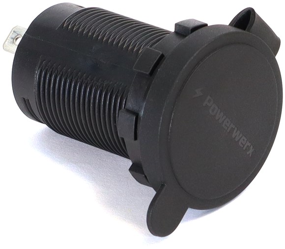 Kombiniertes USB QC3.0- und USB Type-C QC4.0-Ladegerät mit hoher Leistung. Leistungsstarker USB Typ-C mit 36 W Ausgangsleistung bei 12 V DC Eingang und bis zu 60 W bei 20 V DC Eingang. Unterstützung für mehrere Schnellladeprotokolle. Passt in eine Standardbohrung mit 1-1/8" Durchmesser. Ideal zum Laden von Smartphones, Tablets und Laptops