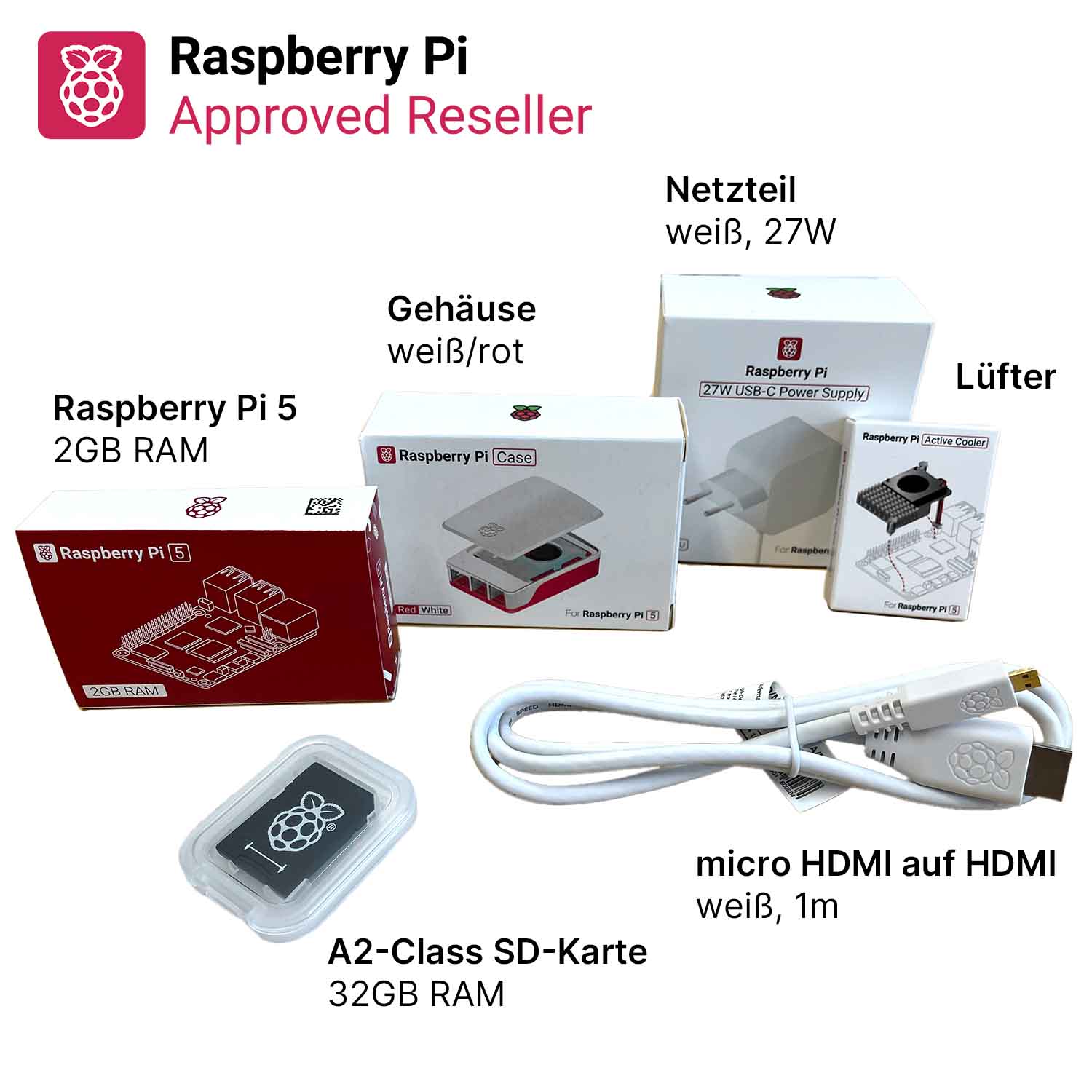 Produktinformationen "Raspberry Pi 5 "XL-Bundle" weiß 2GB RAM"