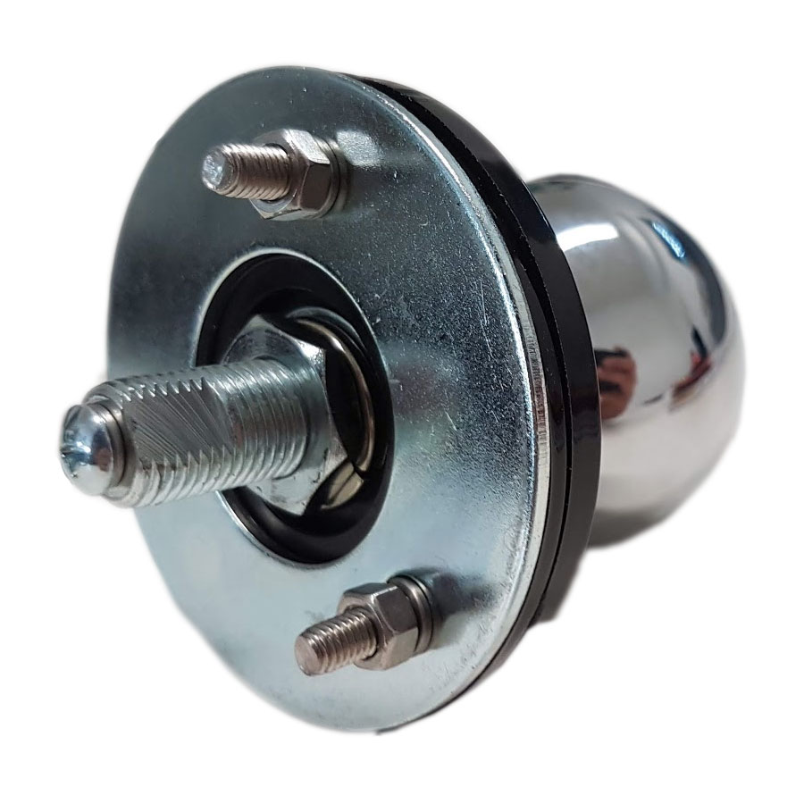 Dieser massive Einbaufuß besitzt einen 3/8"-Anschuß für KW-Antennen und ist um 90 Grad neigbar.
