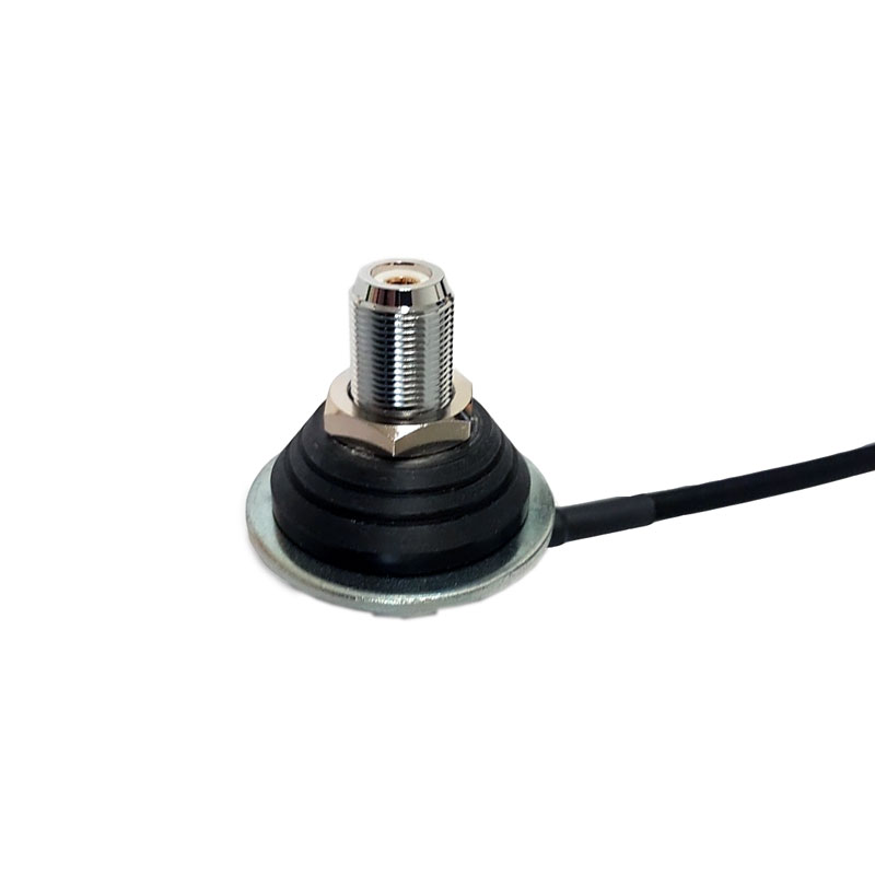 Große Auflagefläche, dafür auch für schwere Antennen wie ATAS-120 etc. geeignet. Außendurchmesser 40mm, Bohrdurchmesser 16mm, Einbautiefe 20mm. Komplett mit 5m Anschlusskabel H-155, seitlicher Kabelabgang, ohne Stecker. Für dünnes Blech liegt eine dicke Unterlegscheibe bei, die INNEN zur Versteifung montiert werden kann.