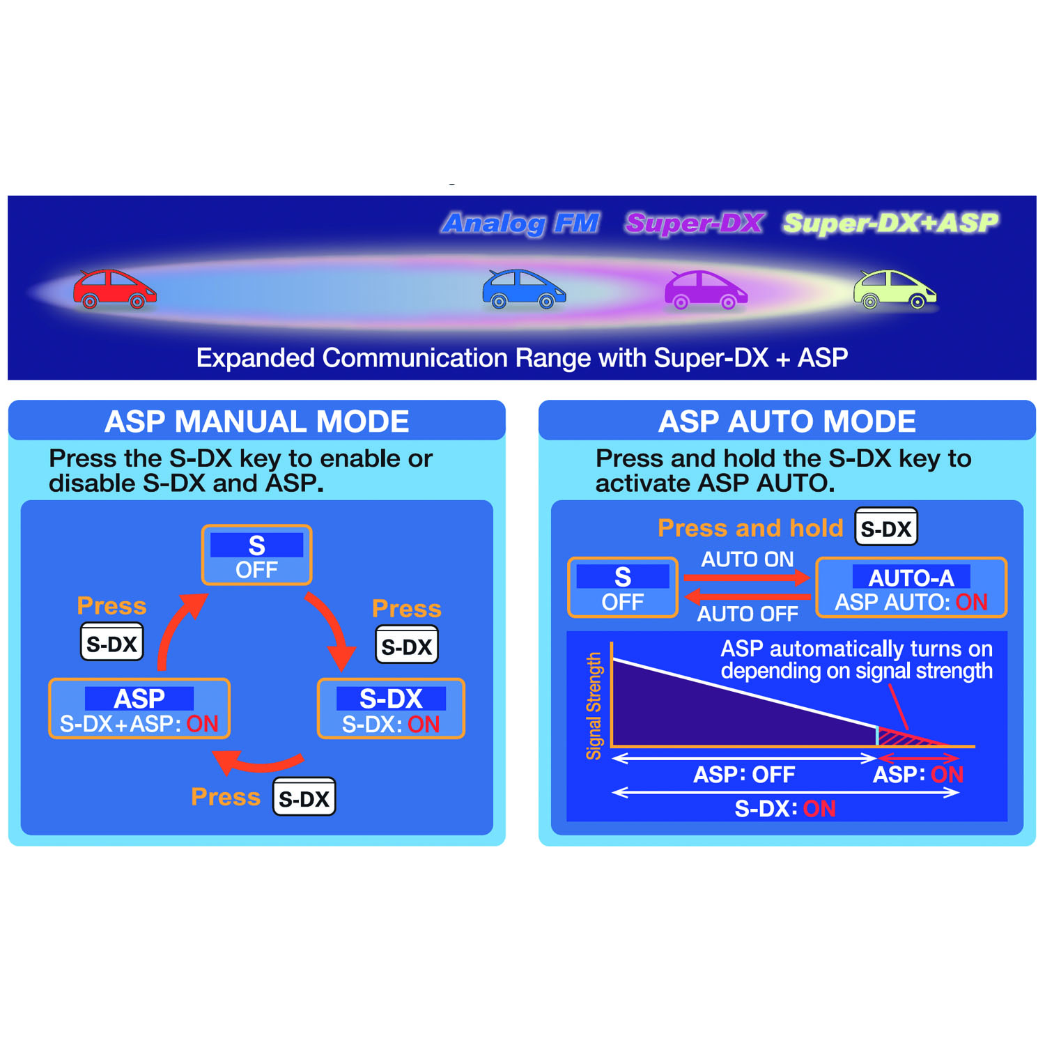 - Bänder RX: wideband von 108 MHz bis 550 MHz in FM / C4FM und AM