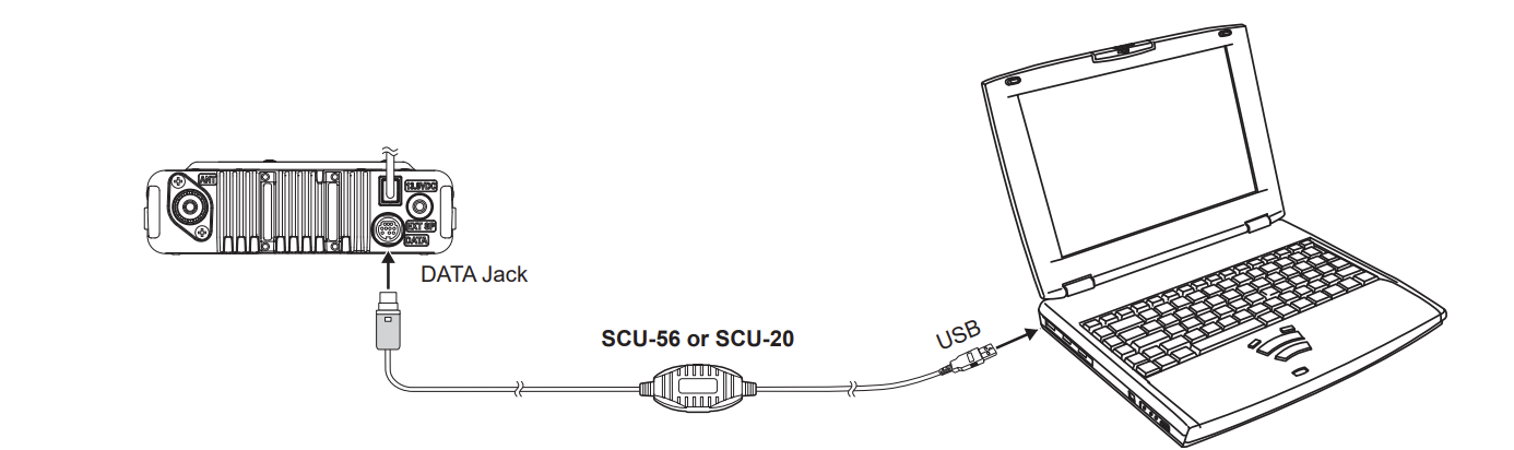 Das enthaltene SCU-56 Datenkabel kann auch zur Programmierung der Speicherkanäle genutzt werden.